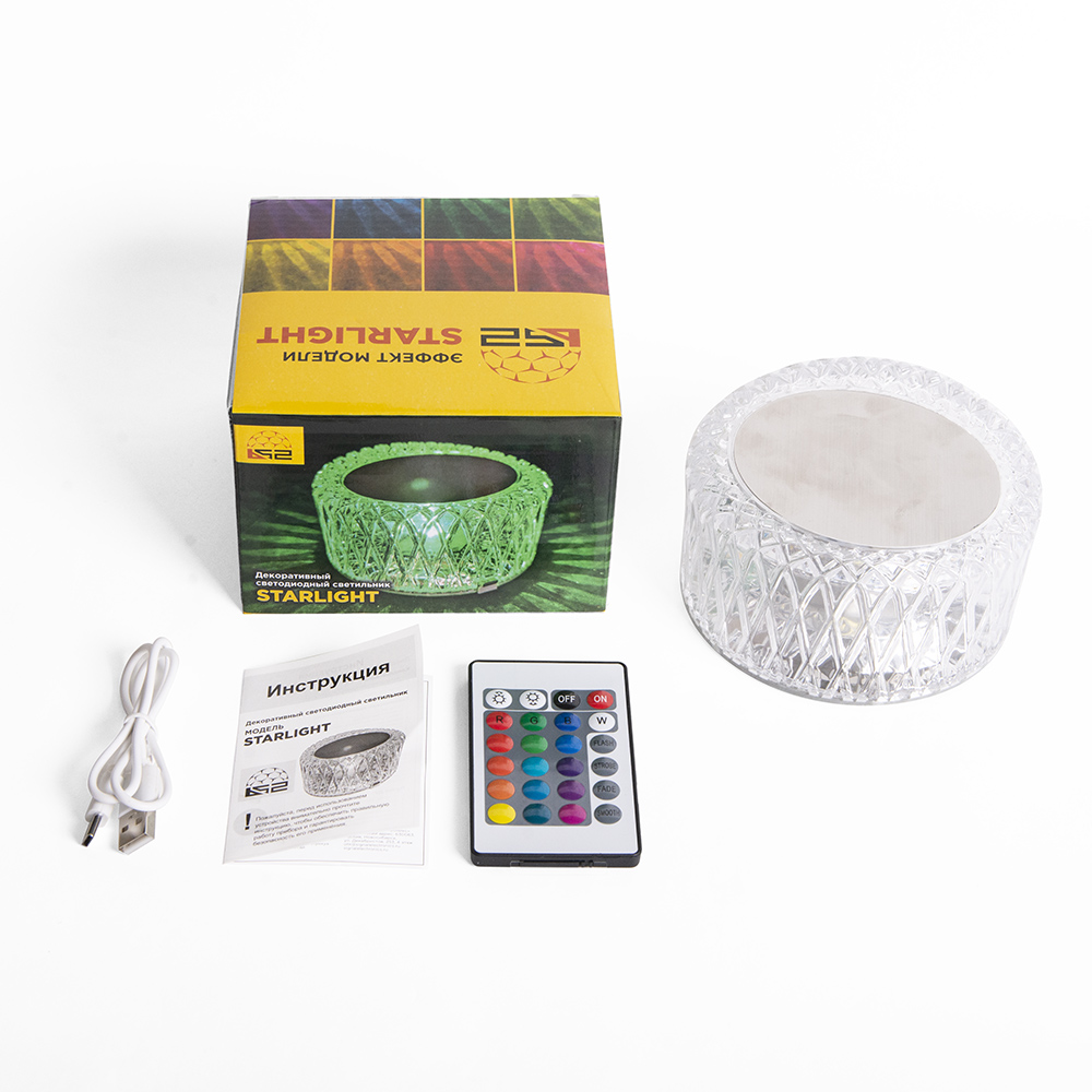 Светильник светодиодный дарит мягкий насыщенный свет, который тонкими лучами освещает пространство вокруг себя, отражаясь от граней светильника. "STARLIGHT" имеет 16 цветов свечения, которые меняются после прикосновения к сенсорной верхней панели.