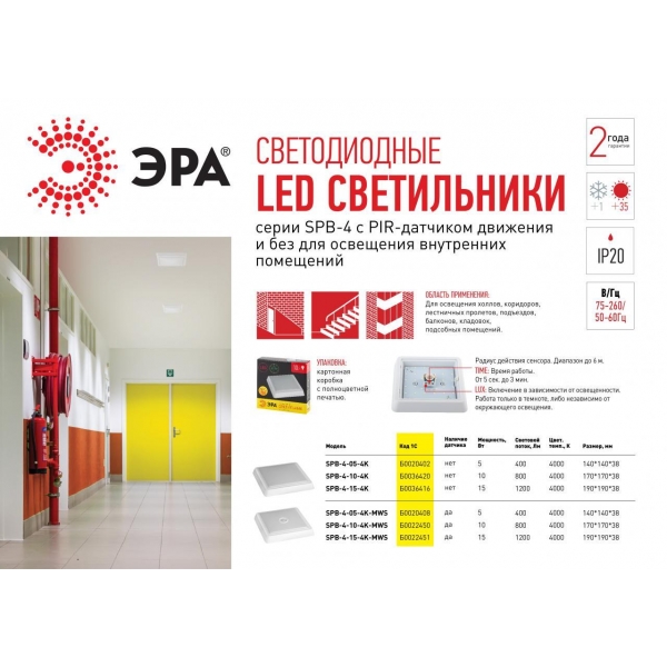 Светильник Эра SPB-4-15-4K IP20 Квадрат