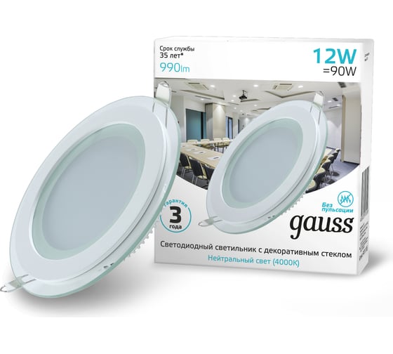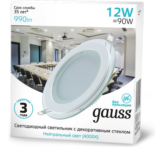 Технические характеристики Gauss с декоративным стеклом, 12W 4000K 947111212