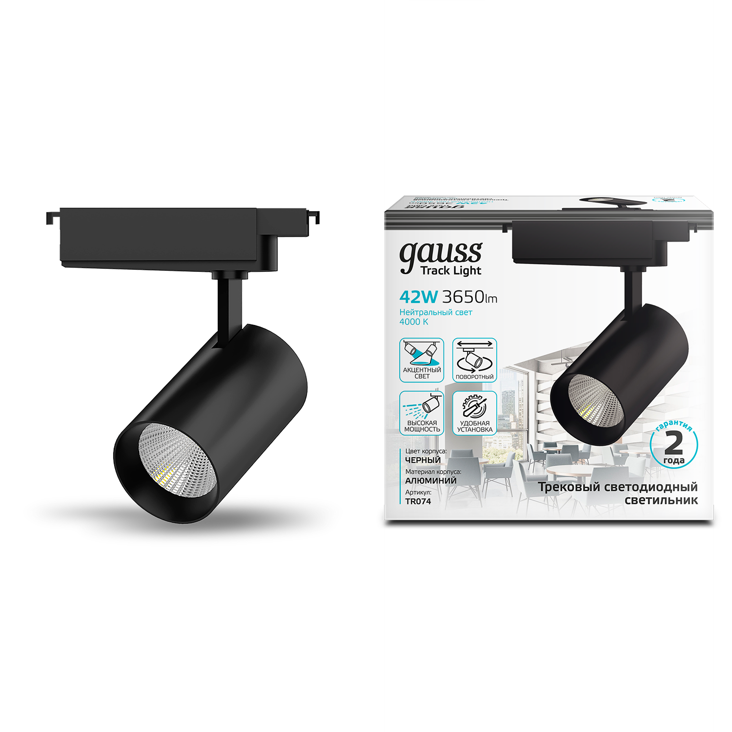 Светильник трековый Gauss цилиндр 42W TR074 - это самый мощный спот в линейке цилиндров. У него самый яркий световой поток 3650лм ,что при концентрации светового пучка 24° позволяет его использовать в помещениях с очень высокими потолками и направлять на дальние расстояния. Светильник изготовлен из прочного алюминия с зеркальным отражателем и линзой и сатинового стекла. Нейтральный белый свет 4000К, который не изменяет цвета объеков. Спот отлично подойдет для эксплуатации в студиях визажа, фотографии, одежды. Отлично подойдет для условий современного дизайна квартиры, дома, дачи.