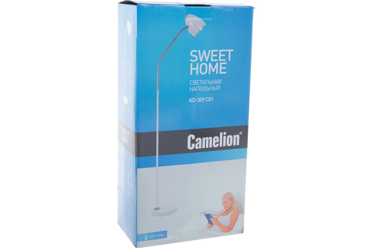 Напольный светильник - торшер, белый 230V 40W E27 Camelion KD-309 C01 11483 - прочный и надежный в работе светотехнический элемент, который идеально подходит для бытовых помещений: спален, рабочих кабинетов, офисов и пр. Гибкая стойка позволяет регулировать плафон и направлять свет под необходимым углом.