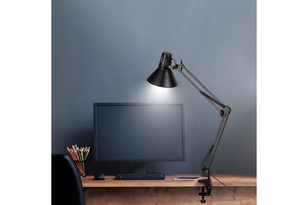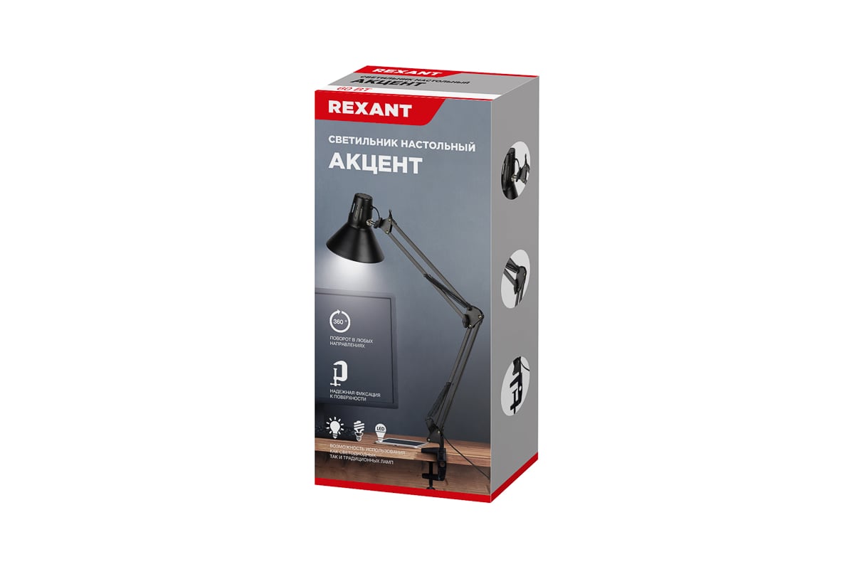 Настольная лампа REXANT Акцент на струбцине Е27 черная 603-1008 используется для освещения рабочего места, места чтения или учебы. Благодаря лаконичному дизайну и мягкому приятному свечению светильник создаст неповторимый уют как в офисе, так и дома. Корпус выполнен из высококачественного металла. Встроенный механический выключатель.