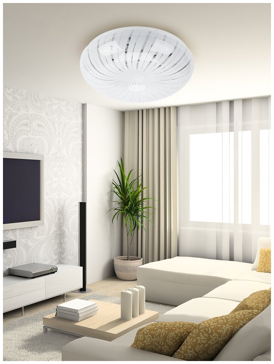Благодаря отличному теплоотводу обеспечивается продолжительный срок службы. Плафон с узором-медузой идеально сочетается с выпуклым круглым корпусом. Эксклюзивный дизайн позволяет увеличить количество вариантов использования LED люстры. Изящное потолочное освещение получится обустроить в гостиной, прихожей или спальне. Мощность в 18 Вт и срок службы в 30 000 часов подарят долгую работу светодиодного светильника.