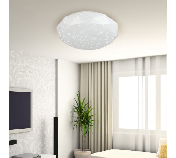 Весомым преимуществом является равномерное распределение света и матовое оформление рассеивателя. Благодаря этому Ваши глаза полностью защищены от воздействия прямого света. Электросветильник отличается непростым дизайном. Форма рассеивателя напоминает искру. Это позволит стилизовать пространство потолка под космос: создать эффект звездного неба! Такая LED люстра создаст необычный эффект в детской или спальне. Имеет средний срок службы в 30 000 часов и I класс электробезопасности.