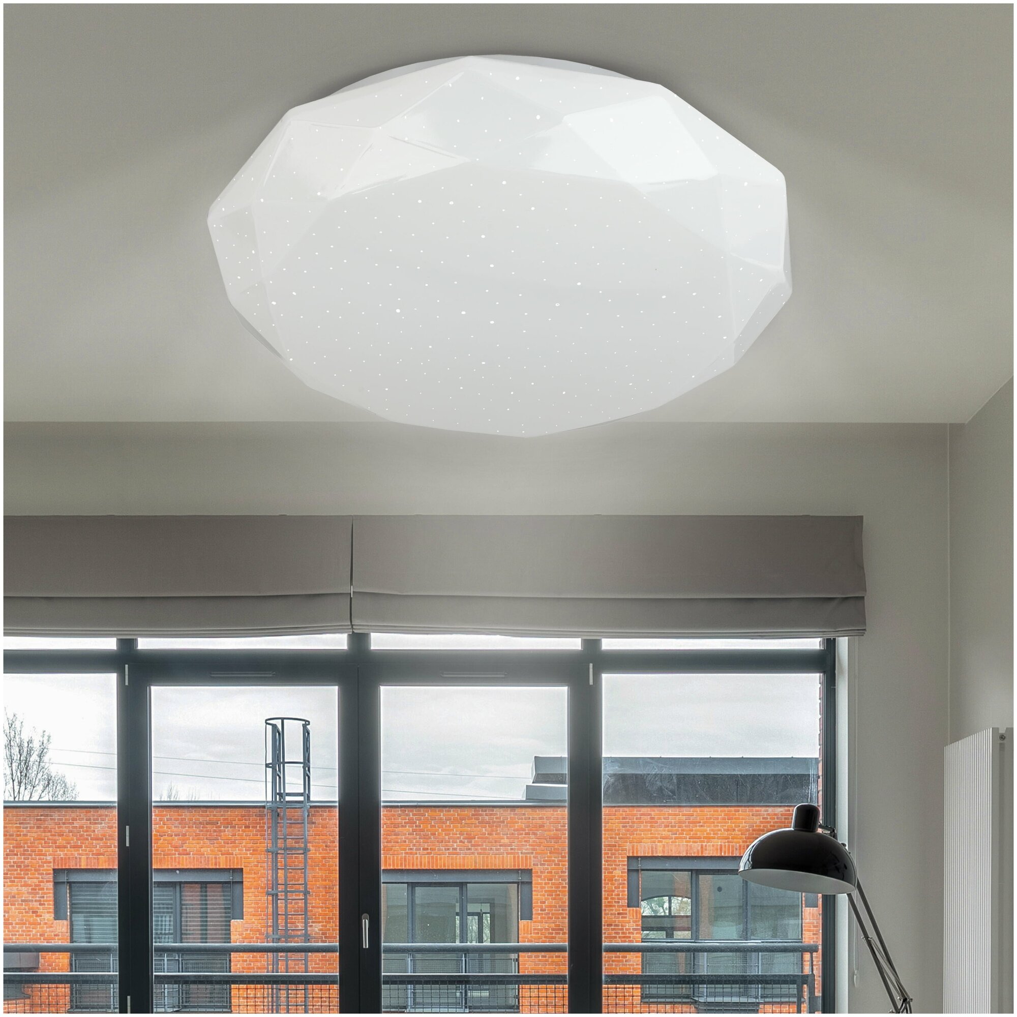 Весомым преимуществом является равномерное распределение света и матовое оформление рассеивателя. Благодаря этому Ваши глаза полностью защищены от воздействия прямого света. Электросветильник отличается непростым дизайном. Форма рассеивателя напоминает искру. Это позволит стилизовать пространство потолка под космос: создать эффект звездного неба! Такая LED люстра создаст необычный эффект в детской или спальне. Имеет средний срок службы в 30 000 часов и I класс электробезопасности.
