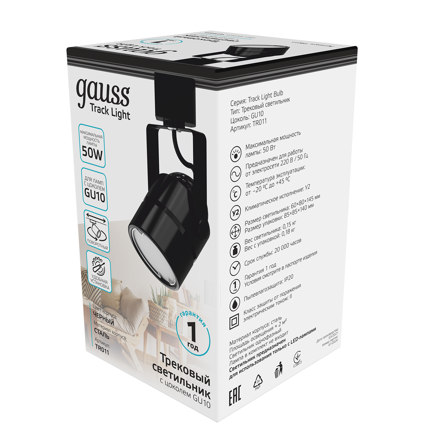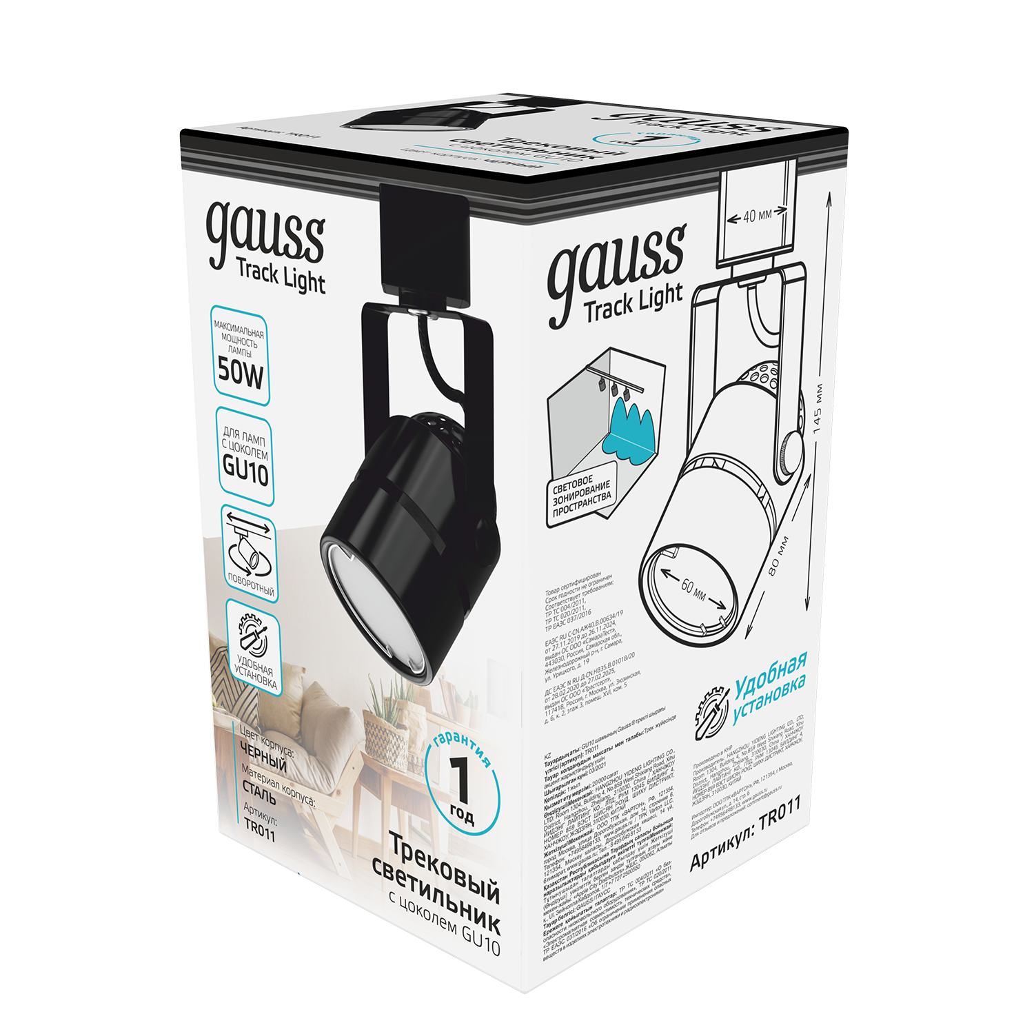 Светильник трековый Gauss цилиндр GU10 TR011 предназначен для LED ламп с максимальной мощностью до 50w. Благодаря своему лаконичному дизайну и мобильности он отлично подойдет для разных стилей интерьера и высоты потолков. Трековые светильники серии Track Lights LED хорошо сочетаются с другими типами освещения и могут случить в качестве основного света в современных интерьерах. Светильник легко устанавливается на шинопровод, по которому его можно переместить в любую сторону планки и направить в заданную точку пространства в комнате или любом другом помещении.