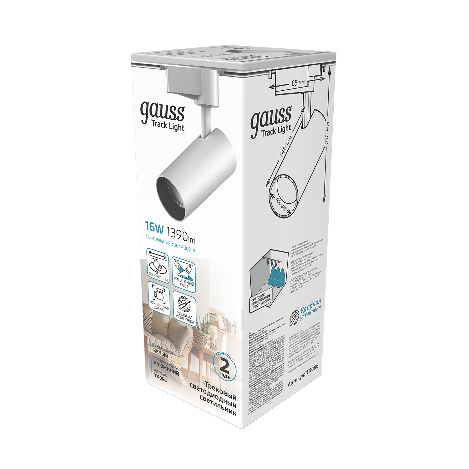 Светильник трековый Gauss цилиндр 16W TR066 имеет компактный дизайн, угол поворота 360° и оптимальный наклон в вертикальной плоскости. Это очень пластичный светильник для акцентного освещения отдельных зон жилых и нежилых помещений и для точного функционального освещения: журнальный и рабочий стол, гардероб, зеркала, интерьерные цветы и другие предметы интерьера, требующие дополнительного направленного света. Световой пучок 24°, яркость 1390лм, цветовая температура 4000К. Цвет корпуса белый, материал алюминий. Встраивается в трековые системы Gauss.