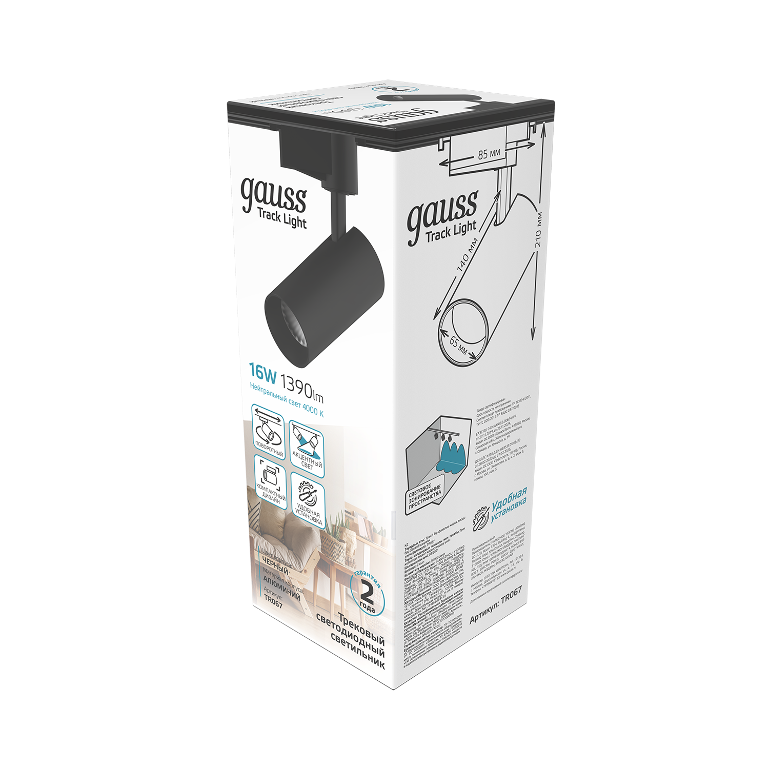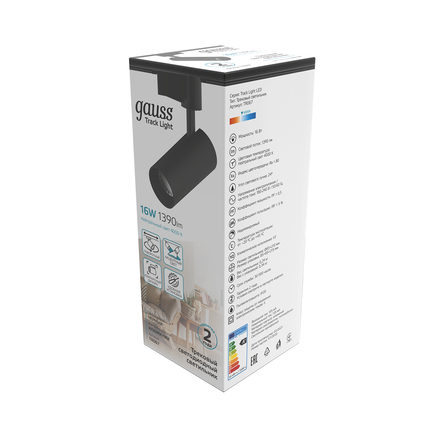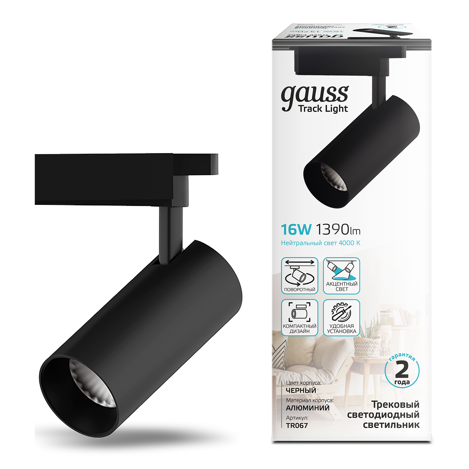 Светильник трековый Gauss цилиндр 16W TR067 имеет компактный дизайн, угол поворота 360° и оптимальный наклон в вертикальной плоскости. Это очень пластичный светильник для акцентного освещения отдельных зон жилых и нежилых помещений и для точного функционального освещения: журнальный и рабочий стол, гардероб, зеркала, интерьерные цветы и другие предметы интерьера, требующие дополнительного направленного света. Световой пучок 24°, яркость 1390лм, цветовая температура 4000К. Цвет корпуса черный, материал алюминий. Встраивается в трековые системы Gauss.