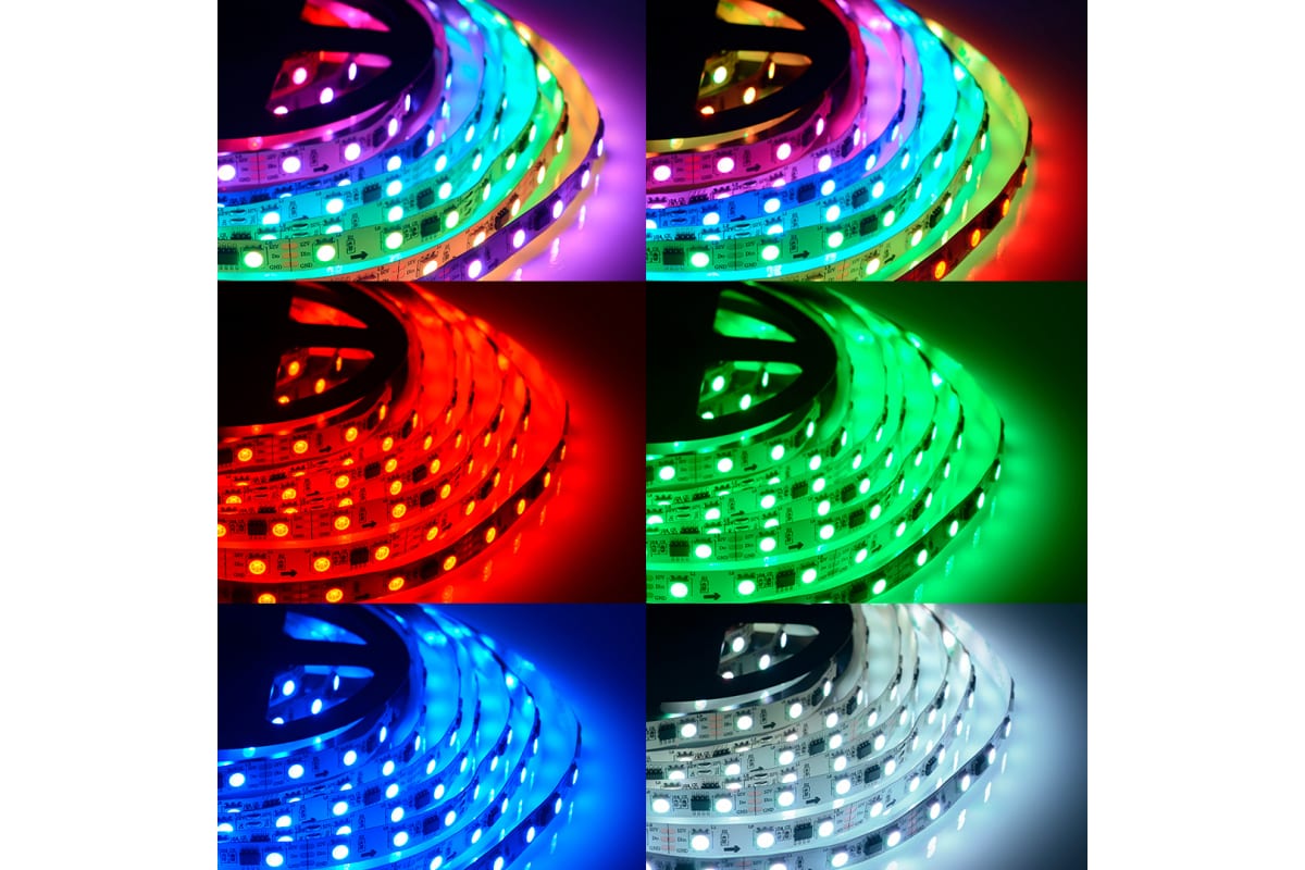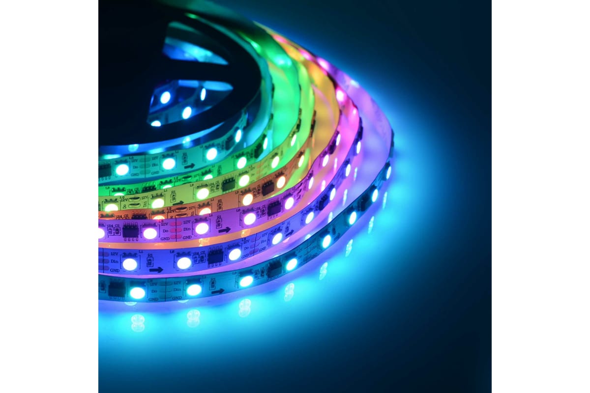 Данная модель светодиодной ленты является многоцветной (RGB). Каждый светодиод такой ленты имеет 3 базовых цвета: синий, зеленый и красный. В зависимости от используемого контроллера можно получить до 256 различных оттенков свечения. Адаптер питания с проводом и вилкой в розетку с одной стороны и коннектором для подключения адресной светодиодной ленты, с другой стороны. Степень защиты адаптера соответствует стандарту IP44 и допускает установку во влажных местах, но в то же время должна сохраниться защита от прямого попадания воды. Степень защиты светодиодной ленты соответствует стандарту IP20, что подразумевает использование только в сухих и проветриваемых помещениях. Отрезать светодиодную ленту можно в специально отмеченных местах, которые располагаются через каждые 50 мм.