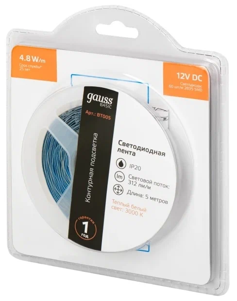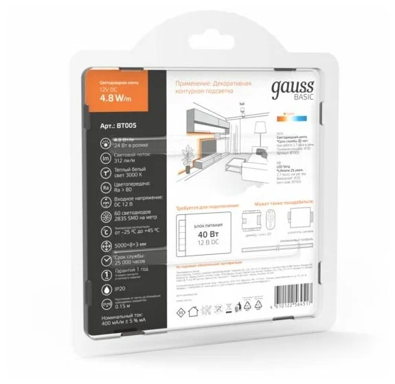 Ассортимент светодиодных лент Gauss способен решить ряд задач связанных как с декоративным освещением помещений, так и с экстерьерной подсветкой.