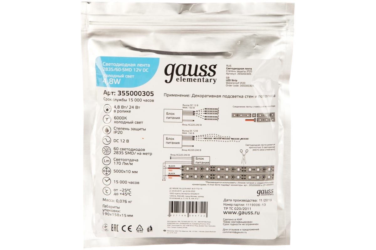Тип светодиода: SMD 2835