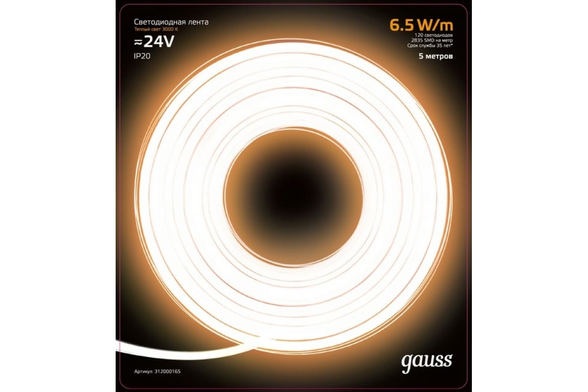 Потребляемая мощность на 1 метр: 6.5 Вт