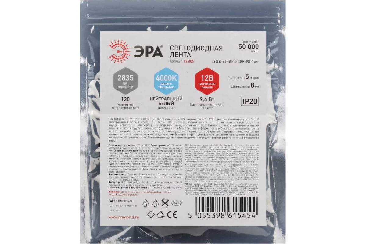 Технические характеристики ЭРА LS2835 9,6120124000KIP201 year белая 5м Б0053968