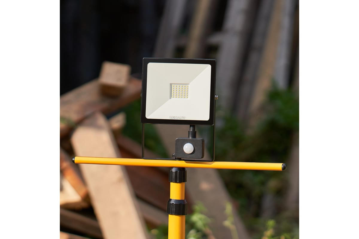 Устойчив к механическим воздействиям благодаря прочному алюминиевому корпусу. Степень пылевлагозащиты IP44 позволяет использовать прибор в уличных условиях под навесом. Поворотная скоба дополнительно позволяет регулировать угол освещения.