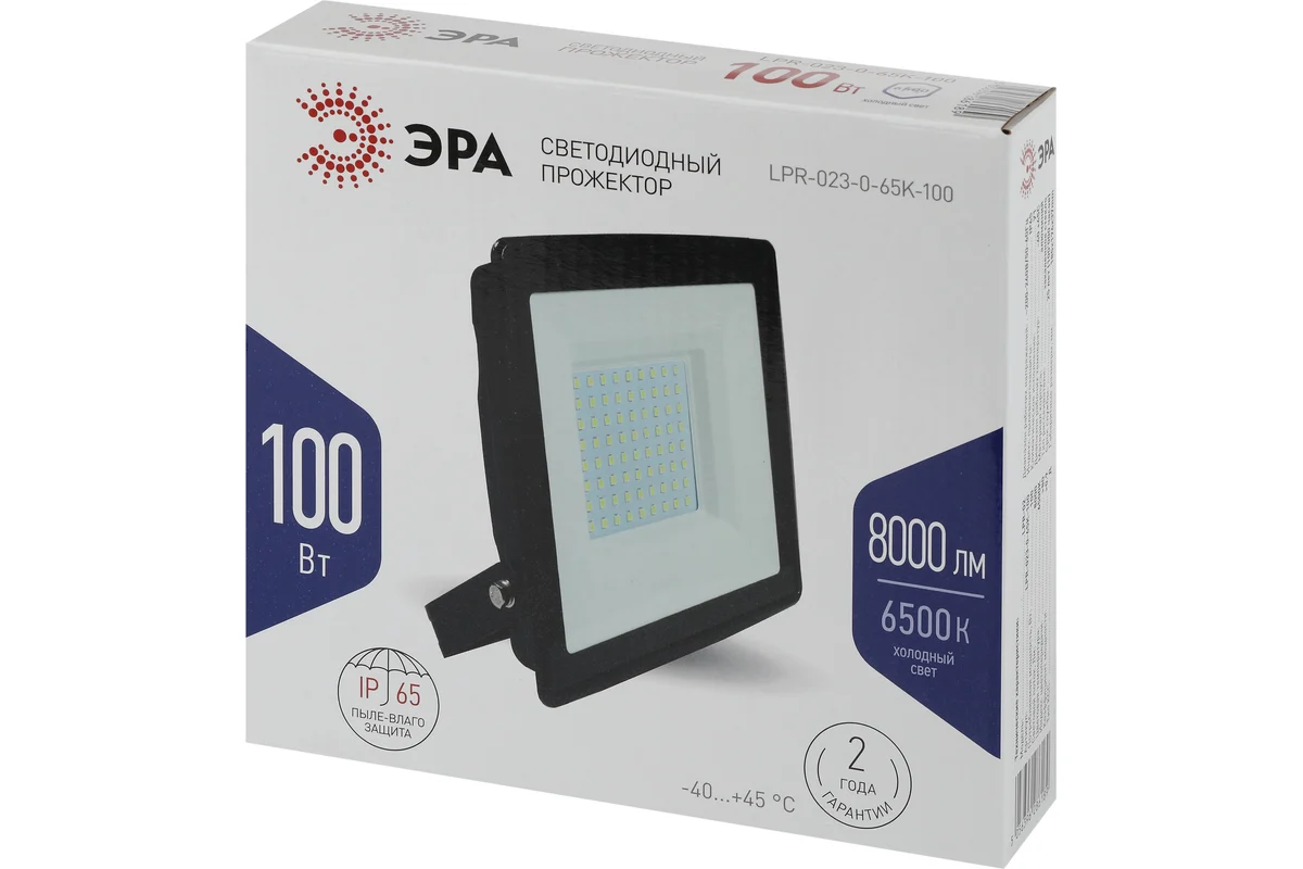 Светодиодный уличный прожектор ЭРА LPR023065K100 100Вт 6500K 8000Лм 211х163х28 Б0052026 изготовлен из прочного алюминия, стекло закаленное. Экономичная LED-технология сократит до 90% затрат на электроэнергию. Прожектор устойчив к механическим воздействиям, защищен от дождя и пыли, работает при широком диапазоне температур (от -40 до +45).