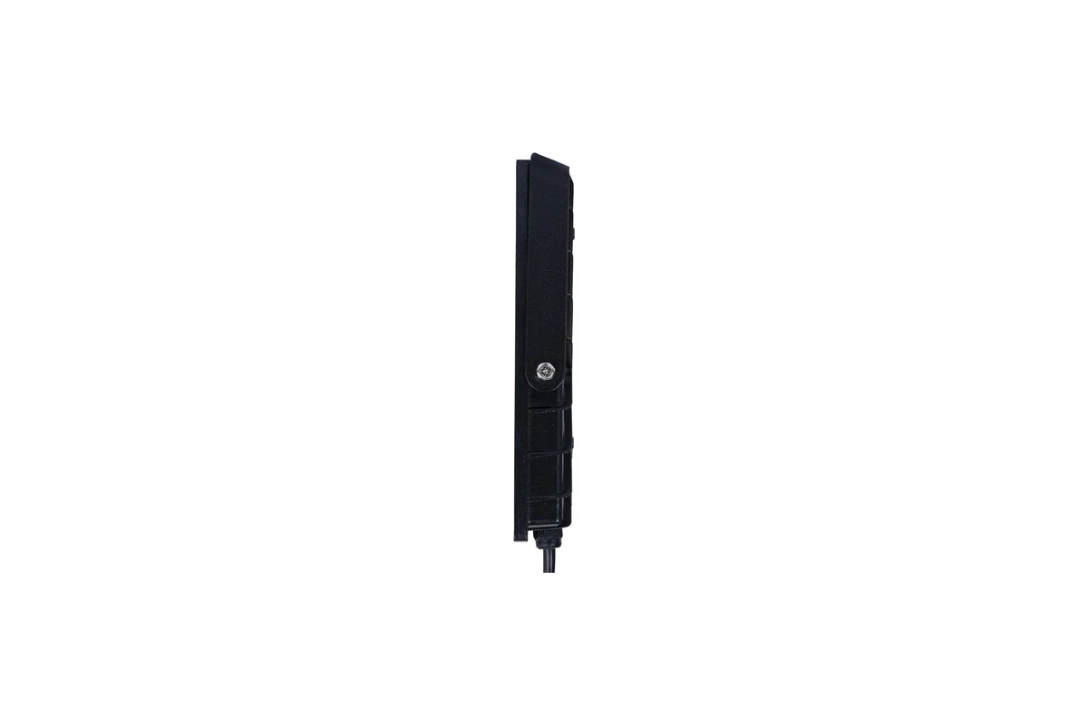Прожектор обладает высокой степенью пылевлагозащиты IP65, что позволяет использовать его на улице, а также в помещениях с повышенной влажностью. Он устойчив к перепадам температур и работает в диапазоне от –40 °С до +50 °C. Корпус выполнен из металла с антикоррозийными свойствами и дополнен закалённым стеклом.