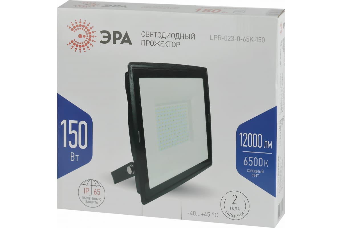 Светодиодный уличный прожектор ЭРА LPR-023-0-65K-150 150Вт 6500K 12000Лм 280х253х41 Б0052027 изготовлен из прочного алюминия, стекло закаленное. Экономичная LED-технология сократит до 90% затрат на электроэнергию. Прожектор устойчив к механическим воздействиям, защищен от дождя и пыли, работает при широком диапазоне температур (от -40 до +45).