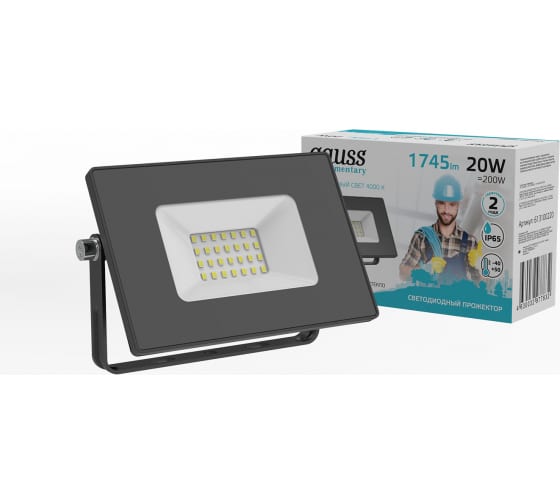 Светодиодный прожектор Gauss Elementary 20W 1745lm IP65 4000К черный 1/20 613100220 созданный для экстерьерной общей подсветки зданий и сооружений, освещения складов, промышленных и торговых объектов, а также ландшафтных объектов, теперь имеет улучшенную модификацию корпуса.