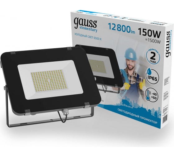 Светодиодный прожектор Gauss Elementary 150W 12800lm IP65 6500K, черный 691511150 созданный для экстерьерной общей подсветки зданий и сооружений, освещения складов, промышленных и торговых объектов, а также ландшафтных объектов, теперь имеет улучшенную модификацию корпуса.