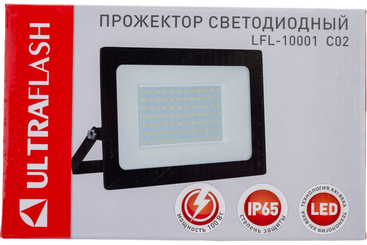 Технические характеристики Ultraflash LFL-10001 C02 черный LED SMD, 100 Вт, 230В, 6500К 14285