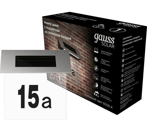Технические характеристики номера дома Gauss на солнечной батарее LED, 6500K