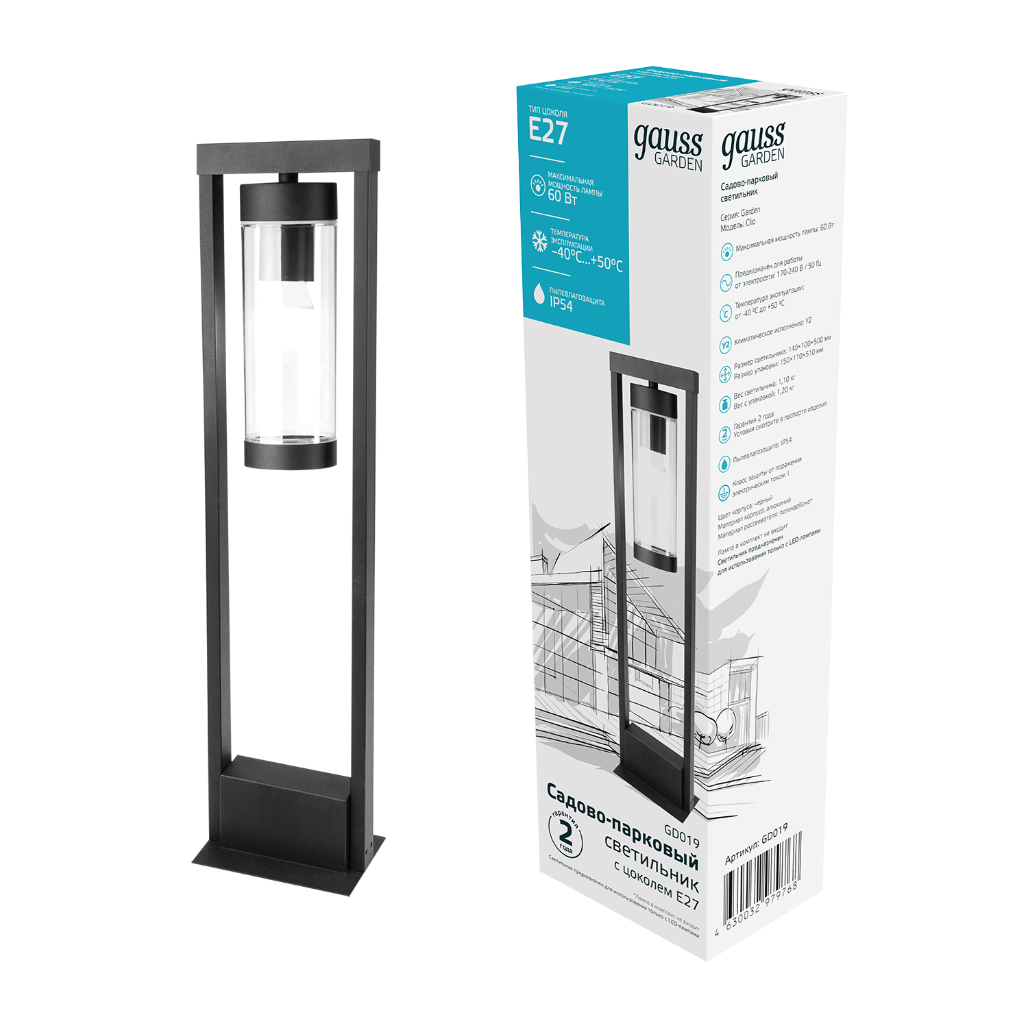 Светильник садово-парковый Gauss Clio столб выполнен в стиле райт и подойдет для большинства современных садово-парковых композиций. Высота столбика 50см, он будет хорошо смотреться в дневное и вечернее время вдоль дорожек, как дополнительное освещение открытых веранд, подиумов, летних кафе, а так же входной группы частных и общественных зданий. Светильник изготовлен из алюминия с порошковым напылением черного цвета, материал колбы - прозрачный поликарбонат. Подходят для ламп с цоколем Е27 и максимальной мощностью до 60w. Степень защиты IP54, диапазон рабочих температур от -40 до +50°С.