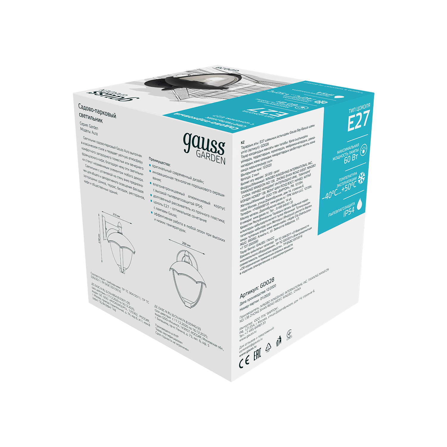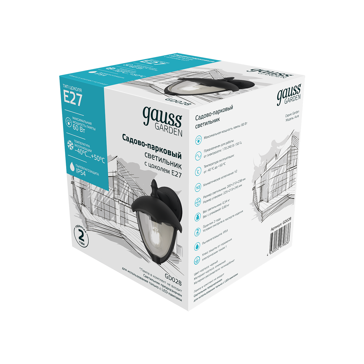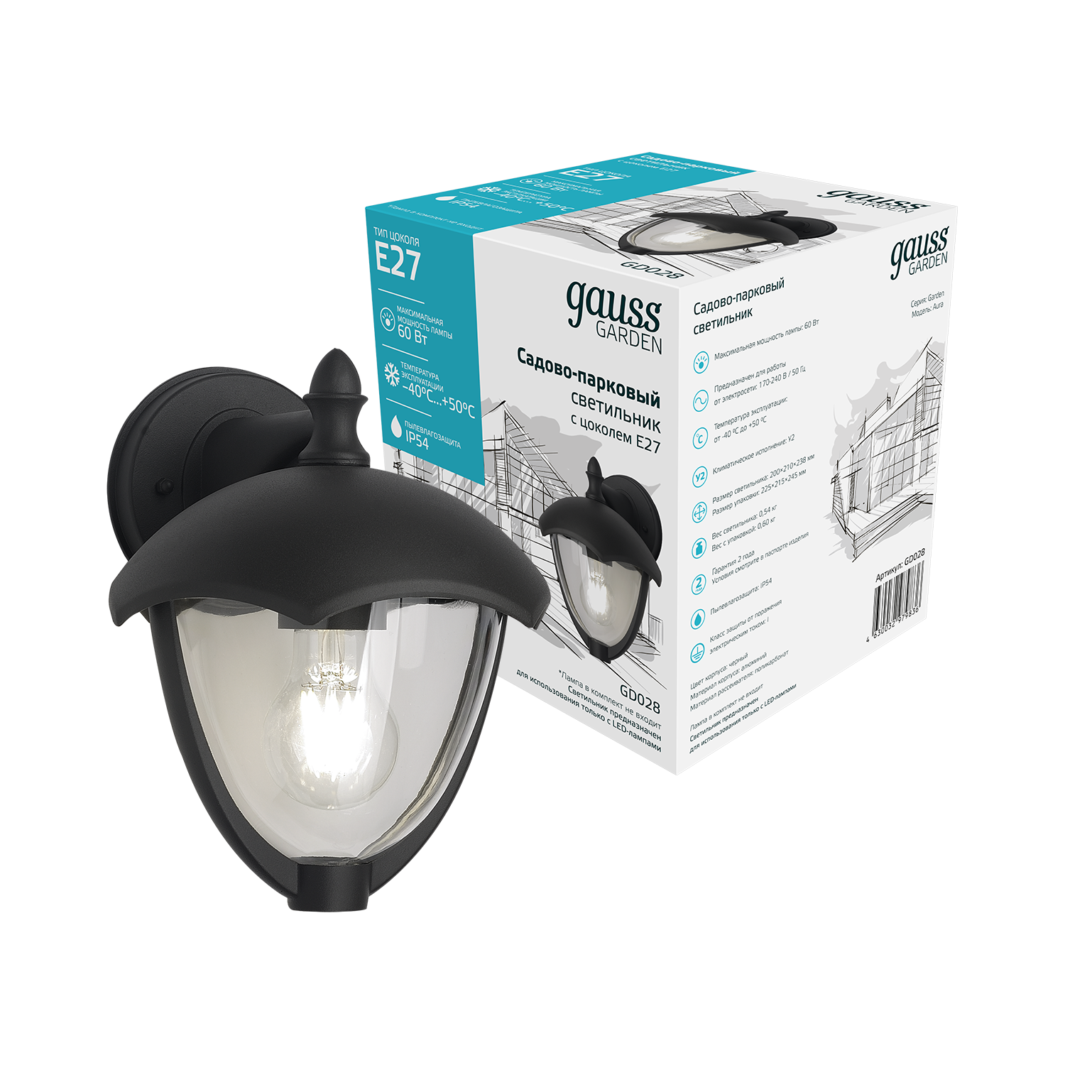 Светильник садово-парковый Gauss Aura настенный - это элегантный светильник, созданный для завершения картины дизайна придомовой и садово-парковой территории. Отлично смотрится на фасадах домов, гаражей беседок и других строений. Имеет высокую степень защиты IP 54, патрон под цоколь Е27 с максимальной мощностью ламы до 60w. Светильник изготовлен из алюминия с черным антикоррозийным напылением. У него широкий диапазон рабочих температур от -40 до +50°С, что позволяет непрерывно работать в течении многих лет.