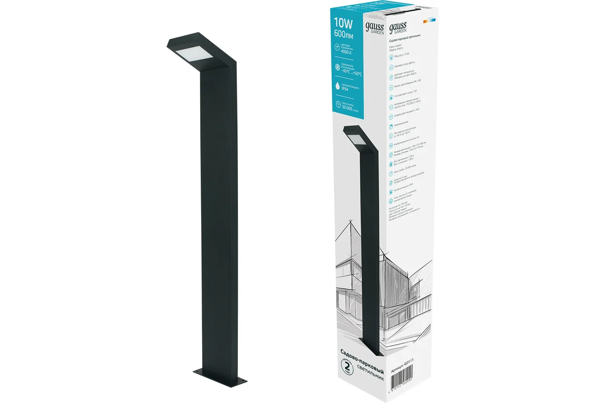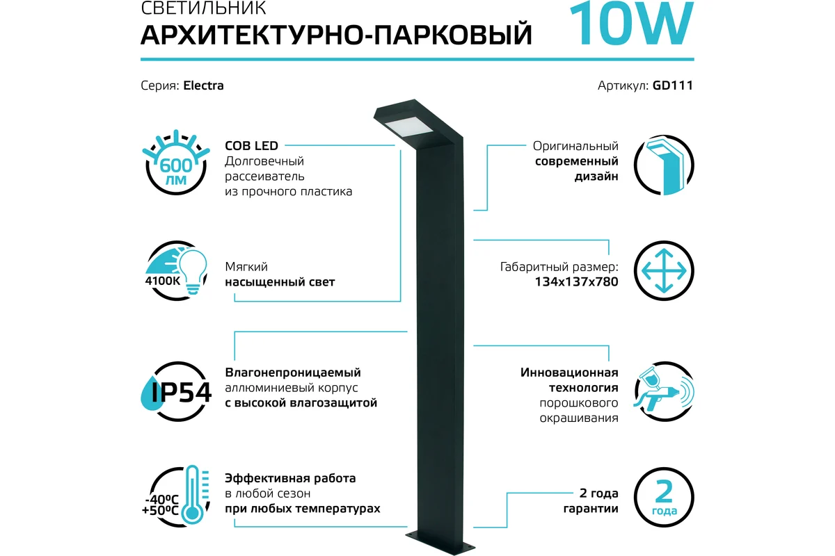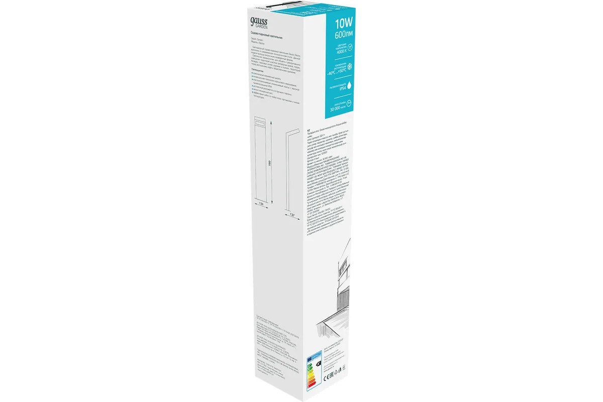 Технические характеристики Gauss Electra LED столб, 10W, 600Lm, 4000K, 134x137x780мм GD111