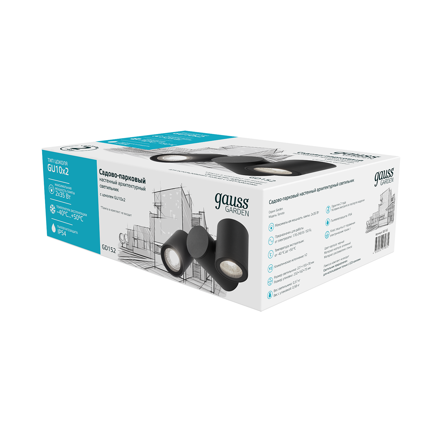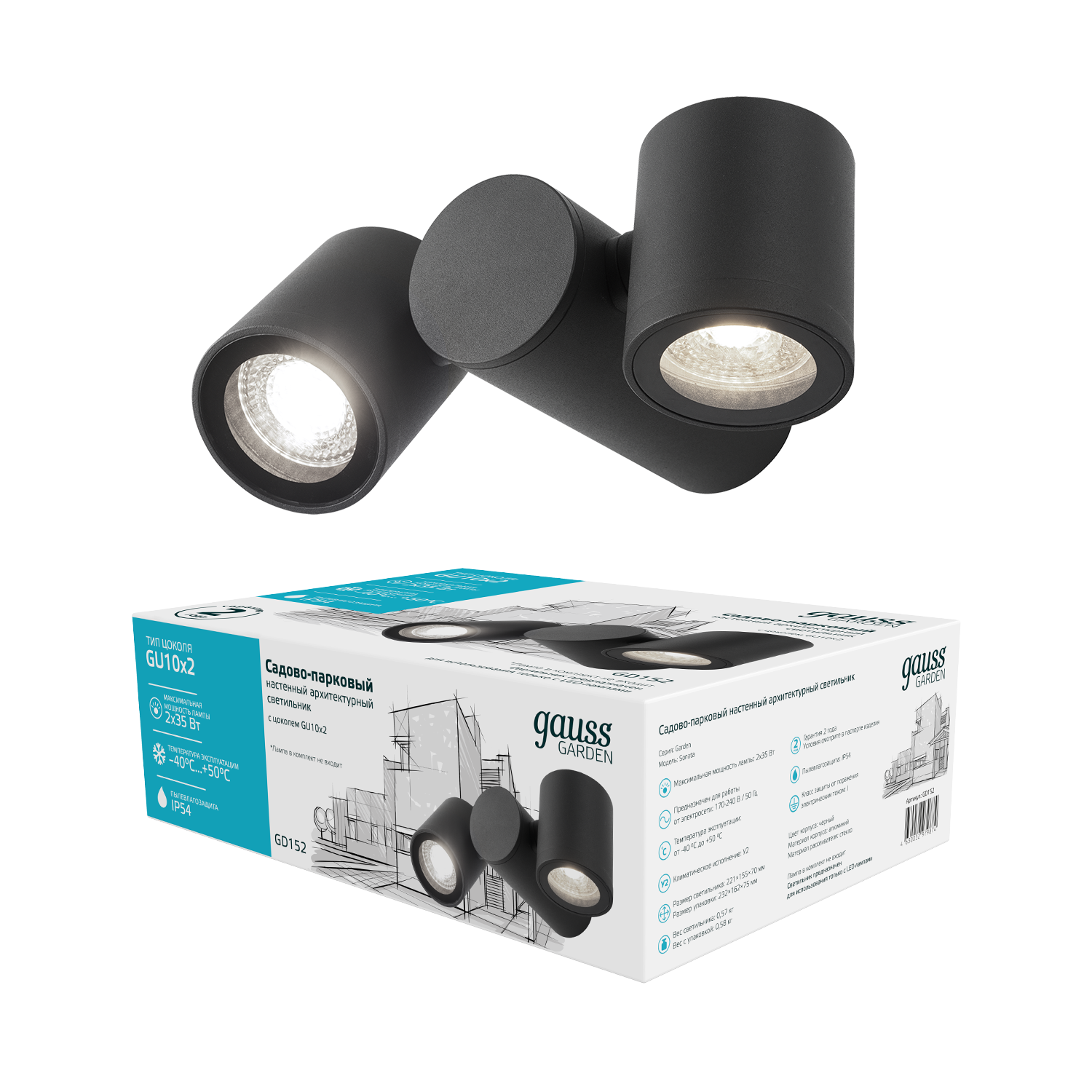 Светильник садово-парковый Gauss Sonata архитектурный настенный с двумя спотами на коротком столбике - это симпатичный и практичный элемент вашего двора или сада. Он прекрасно впишется в любой современный экстерьер фасадов жилых или коммерческих зданий. У него антикоррозийное порошковое напыление на алюминиевом корпусе и закаленное стекло рассеивателя. Допустимая мощность не должна превышать 60Вт( 2по 35вт), IP 54 - работа на открытых пространствах, а диапазон максимальных температур от -40 до +50°С позволяет освещать ваше пространство даже в экстремальных условиях.