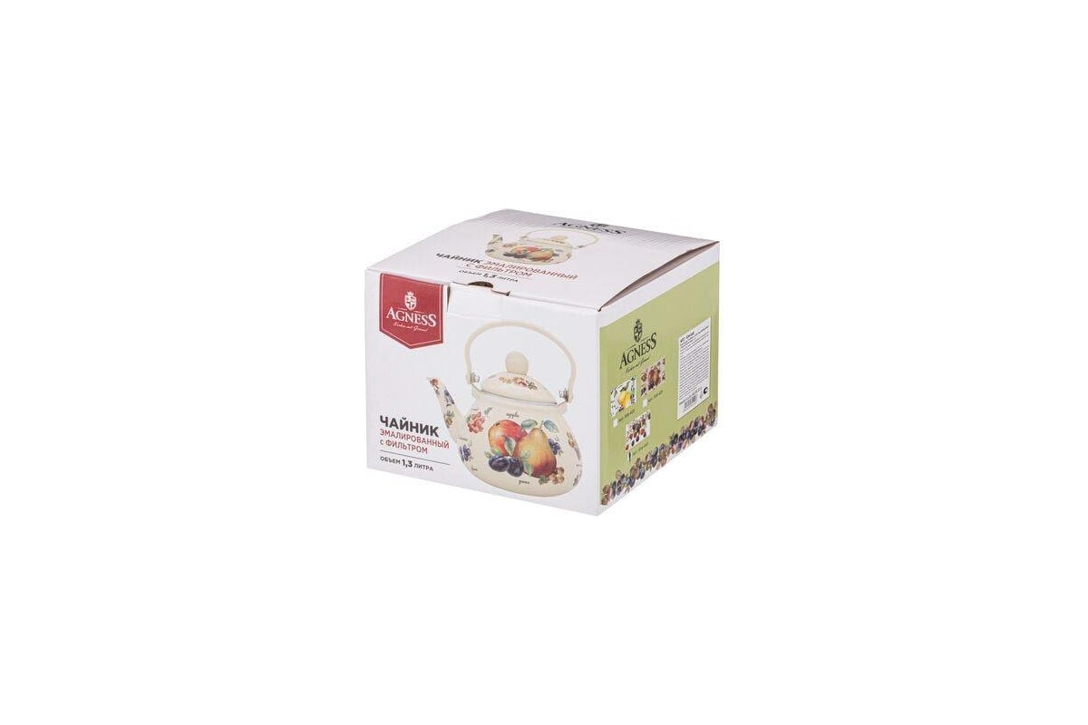 Эмалированный чайник Agness Фрукты с фильтром из нержавеющей стали 1.3 л 934-425 предназначен для дома.