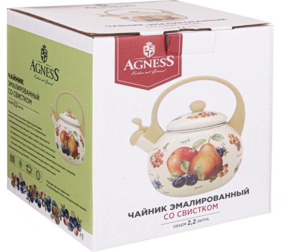 Эмалированный чайник Agness Фрукты со свистком, 2.2 л, индукционное дно 934-429 предназначен для дома.