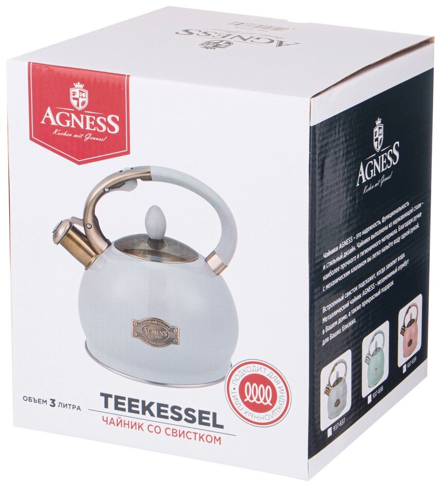 • Благодаря внешнее жаропрочному покрытию и стильному дизайну чайник AGNESS украсит любую кухню