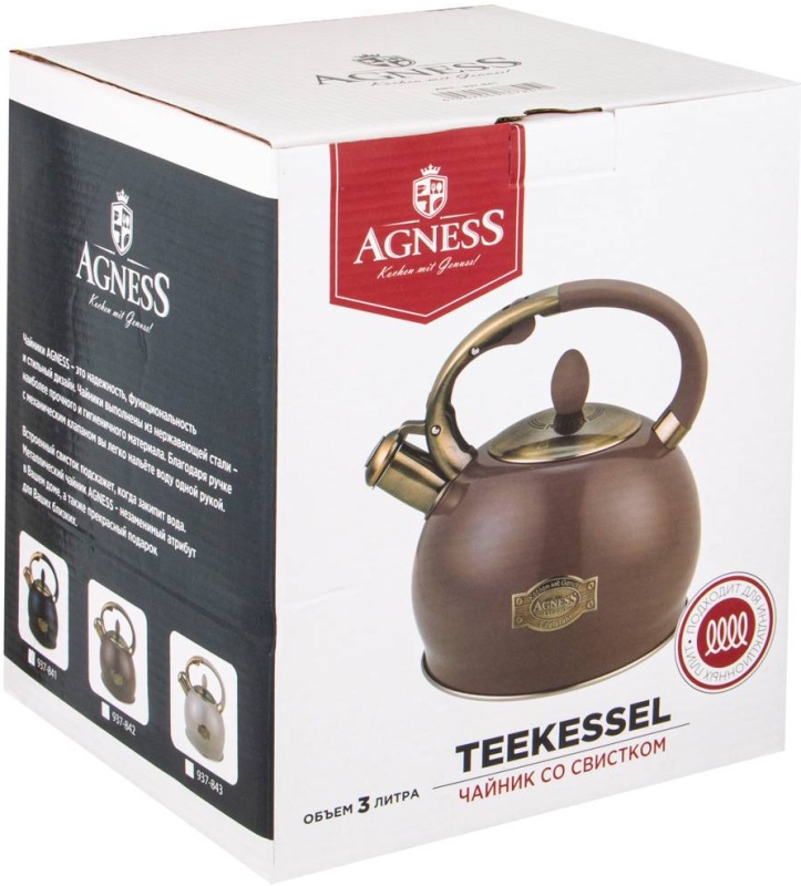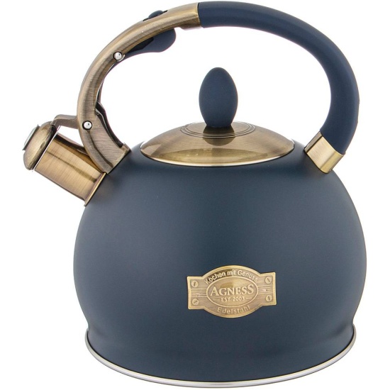 Подходит для всех типов плит, включая Индукционные Металлический чайник AGNESS - незаменимый атрибут в Вашем доме, а также прекрасный подарок для Ваших близких.