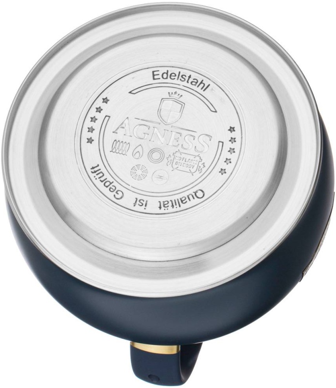 Чайник AGNESS - это надежность, функциональность и стильный дизайн. Чайник выполнен из нержавеющей стали - наиболее прочного и гигиеничного материала.