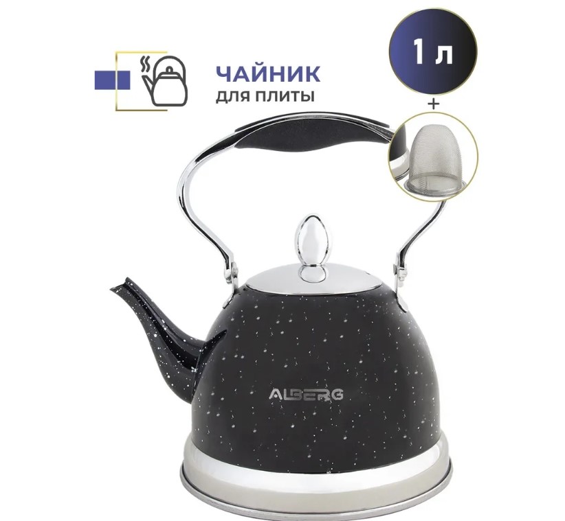 Чайник ALBERG станет отличным помощником на кухне. Объем чайника 1 л позволяет вскипятить воду для небольшой семьи или компании.