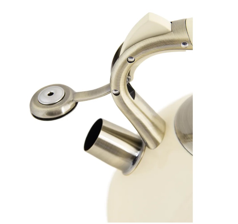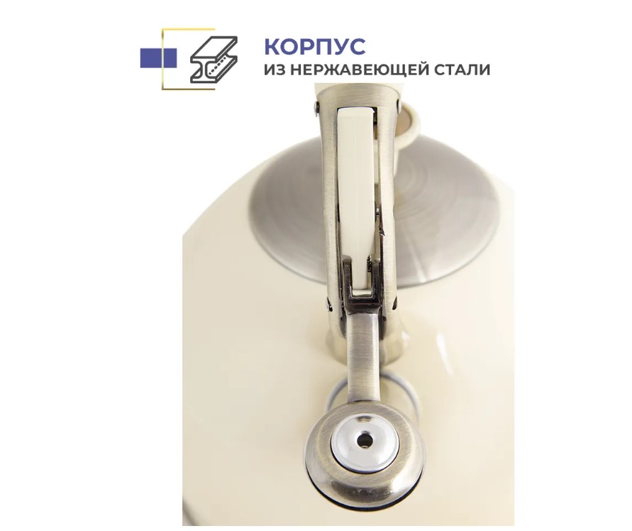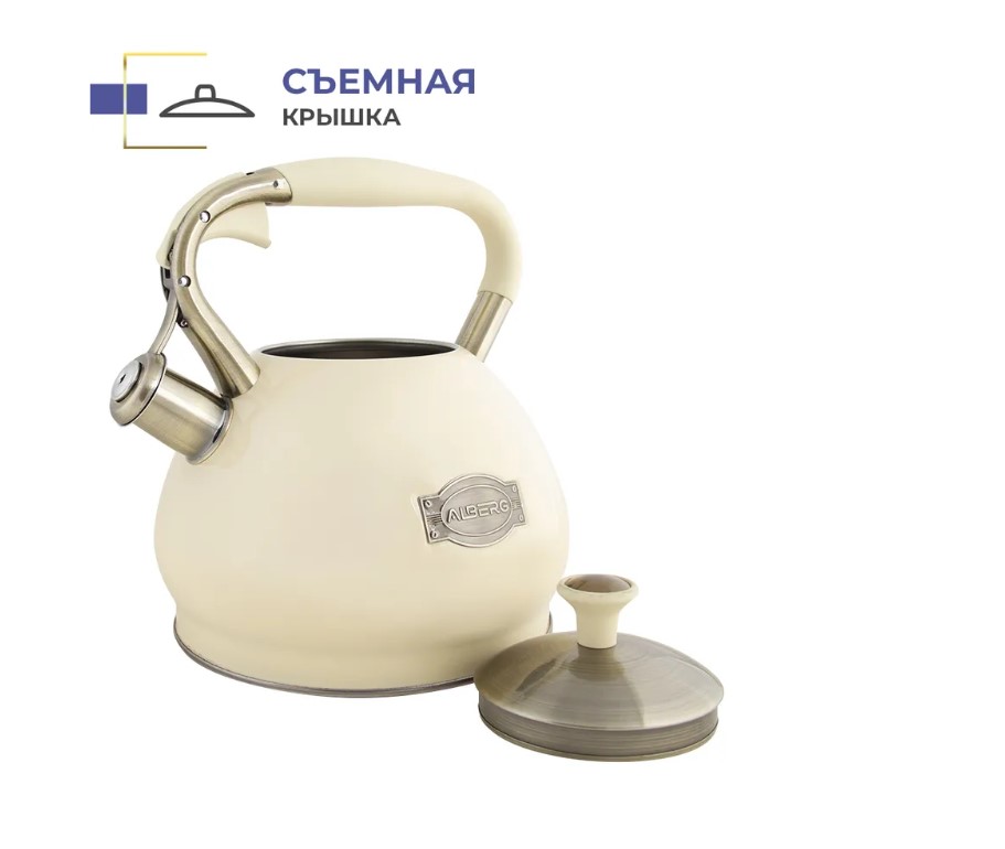 Объем: 3 л Свисток с курковым механизмом открывания Высококачественная нержавеющая сталь Внешнее антипригарное цветное покрытие, устойчивое к высоким температурам Толщина стенок: 0.5 мм Толщина дна: 4.5 мм Фиксированная бакелитовая ручка с цветным покрытием Soft-Touch Многослойное термоаккумулирующее капсулированное индукционное дно Подходит для всех видов плит, включая индукционные Вес чайника: 850 г