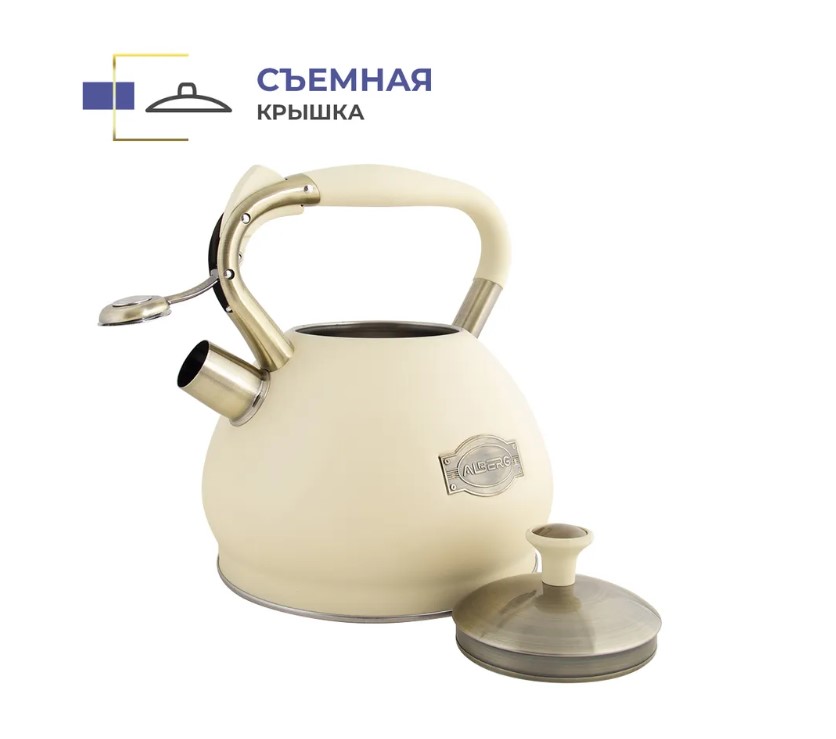 Чайник оборудован свистком, который просигнализирует о том, что вода внутри чайника вскипела. Благодаря съемной крышке чайник удобно мыть. Чайник не рекомендуется мыть в посудомоечной машине.