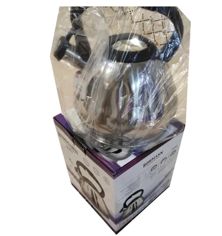 Чайник со свистком, объем 3,0л. Высококачественная нержавеющая сталь. Свисток для определения закипания воды. Подходит для всех типов бытовых плит,включая индукцию. Капсульное дно. Пластиковая ненагревающаяся ручка с курковым механизмом открытия.