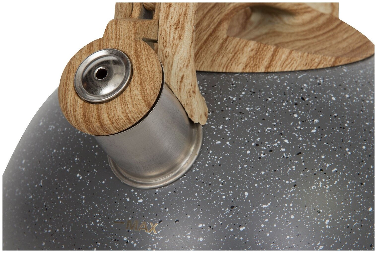 Насадка-свисток позволяет контролировать процесс нагрева и кипячения воды. Носик открывается нажатием кнопки на рукоятке (курковый механизм).