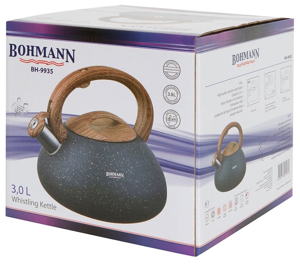 Чайник со свистком Bohmann BH-9935 — идеальное решение для любой кухни. Чайник изготовлен из нержавеющей стали высокого качества. Материал прекрасно подходит для взаимодействия с водой, не подвергается коррозии, отличается повышенной износоустойчивостью и долговечностью. В результате вы получите натуральный вкус и аромат напитков.