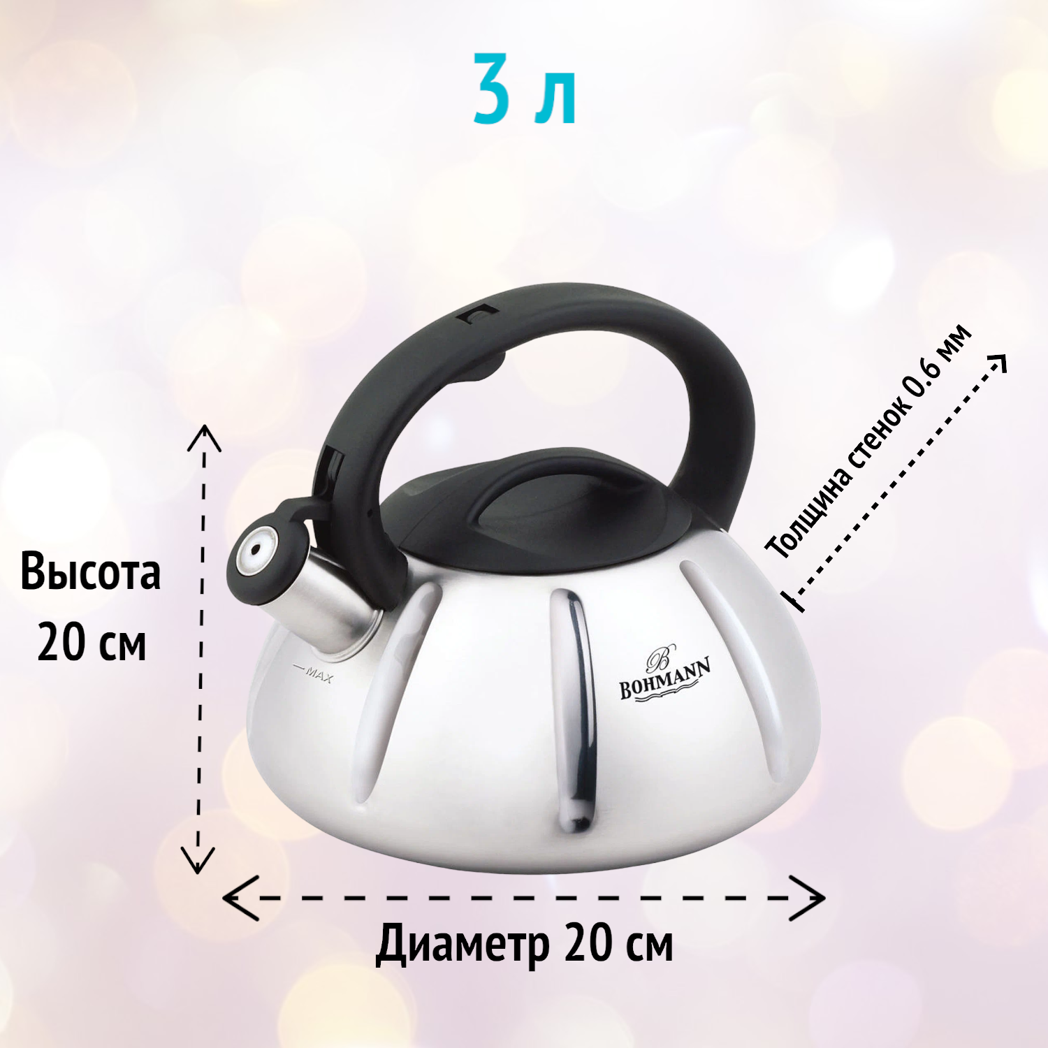 Чайник 3 л со свистком из нержавеющей стали Bohmann, BH-9954 - это высококачественный кухонный аксессуар, который станет незаменимым помощником на вашей кухне.