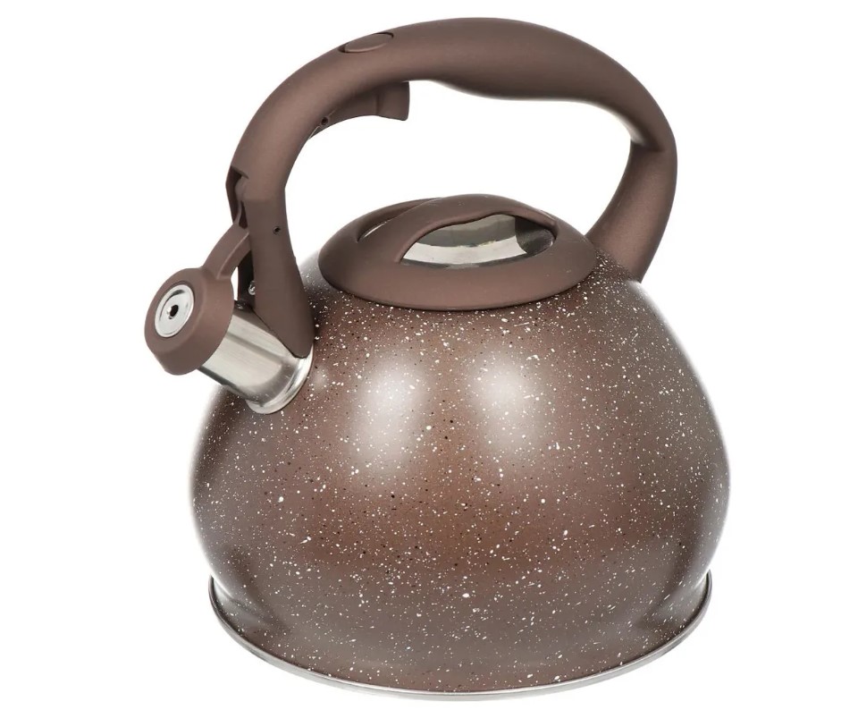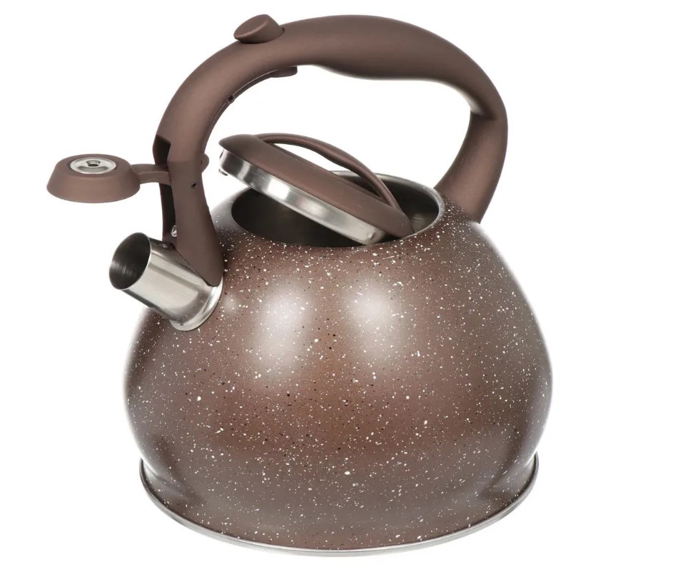 Чайник из нержавеющей стали Daniks MSY-A058 коричневый со свистком, 3 л Описание Посуда Daniks — это отличное решение для любой современной кухни. Разнообразие форм и дизайна, а также высокие стандарты качества — главные достоинства, за которые ценится эта торговая марка. Высококачественная нержавеющая сталь. Капсульное индукционное дно. Подходит для использования на газовых, электрических, стеклокерамических, индукционных плитах.