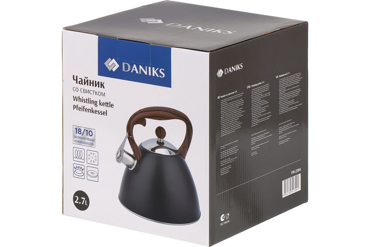 Чайник Daniks – это чайник привлекательного дизайна, который будет не просто полезным аксессуаром на кухне, но и ее украшением. Изготовлен из высококачественной нержавеющей стали, которая обеспечивает безопасность, долговечность и устойчивость к деформациям. Объем чайника позволяет нагреть в нем достаточно воды для чаепития всей семьей. Удобство обращения обеспечивает бакелитовая ручка, которая не поддаётся нагреванию.