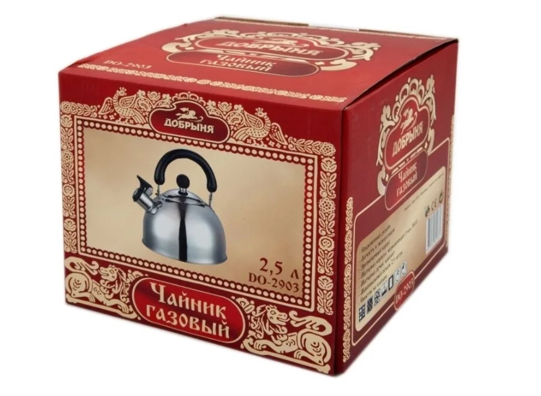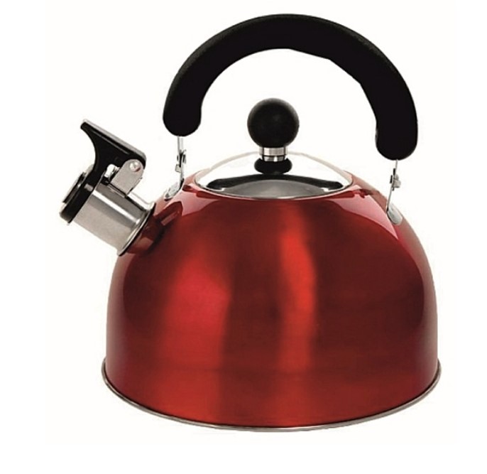 Чайник обыкновенный (неэлектрический). Емкость: 2,5л. Подходит для всех типов плит. Материал корпуса: окрашенная нержавеющая сталь. Материал ручки: бакелит. Свисток в комплекте.