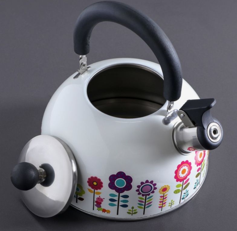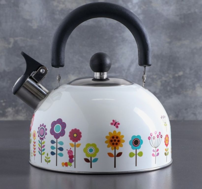Чайник со свистком Доляна «Ромашка», 1,9 л, индукция Габариты и вес Размер (Длина х Ширина х Высота) 23 см х 19 см х 15 см Вес брутто 547 г Особенности Цвет Белый, Разноцветный Объём, л 2.5 Рисунок Да Материал Нержавеющая сталь Тип плиты Для газовой плиты, Для галогенной плиты, Для стеклокерамической плиты, Для электрической плиты Теплоизолированная ручка Да