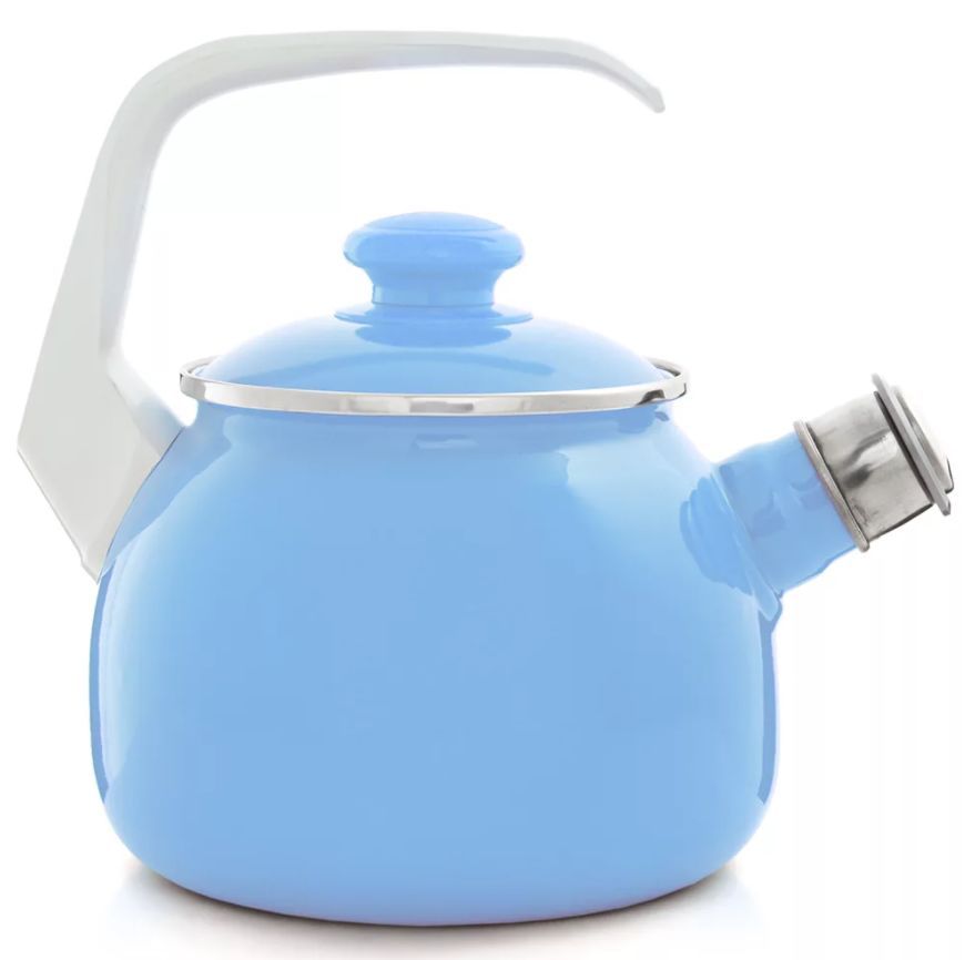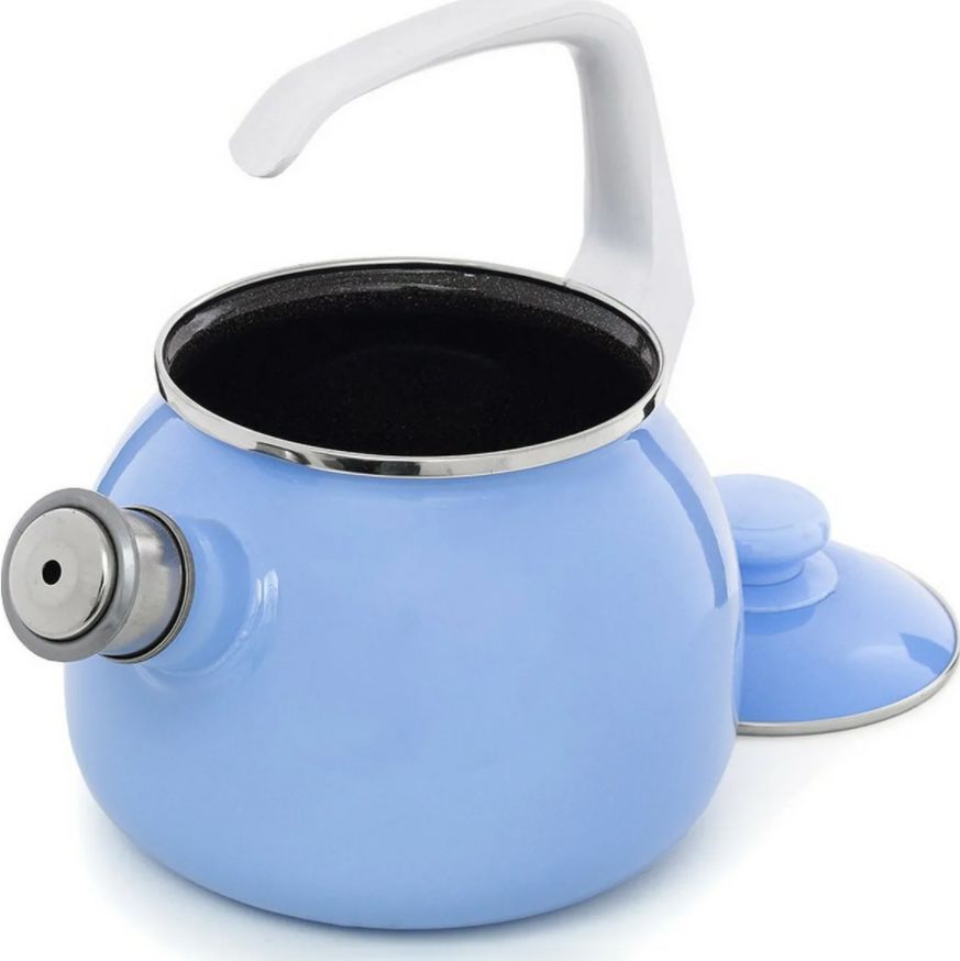 Чайник голубой 2.5л со свистком Чайник Эстет изготовлен из высококачественного стального проката и покрыта стеклокерамической эмалью. Внутри и снаружи - трехслойное глянцевое эмалированное покрытие. Эмалевое покрытие, являясь стекольной массой, не вызывает аллергию и надежно защищает пищу от контакта с металлом. Кроме того, такое покрытие долговечно, оно устойчиво к механическому воздействию, не царапается и не "сходит", а стальная основа практически не подвержена механической деформации, благодаря чему срок эксплуатации увеличивается. Крышка с эмалированным покрытием оснащена удобной ручкой. Подходит для всех типов плит, включая индукционные. Можно мыть в посудомоечной машине.