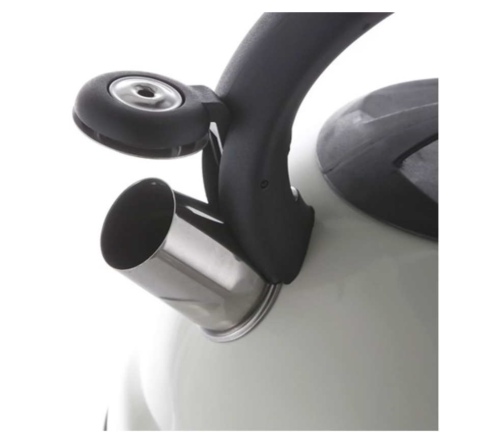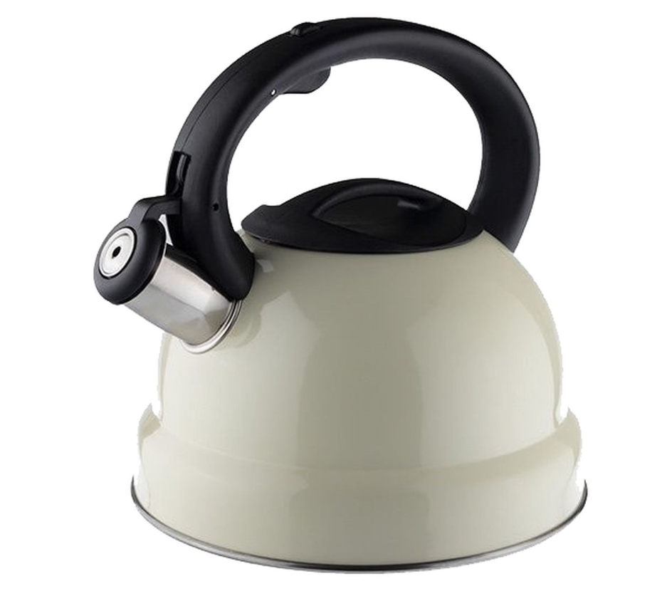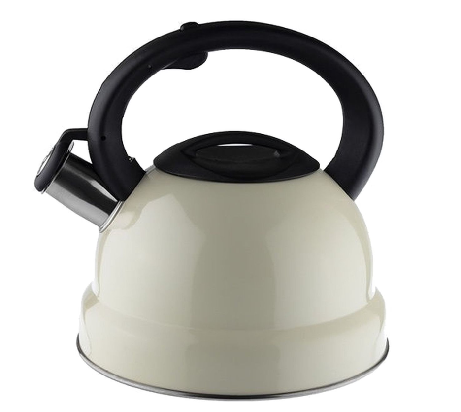Чайник для плиты в белом корпусе является полезным приспособлением для дома, поскольку в нем можно вскипятить 2,5 литра воды, чтобы приготовить горячий напиток – кофе или чай.