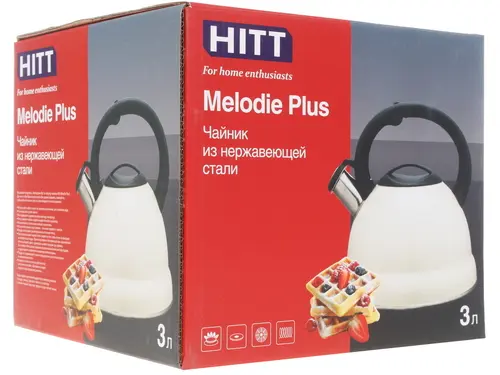Изготовлен из нержавеющей стали, что говорит о прочности конструкции прибора. Пластиковые детали чайника – крышка и ручка – не допускают нагревания, что делает устройство удобным и безопасным в использовании. приспособлением.