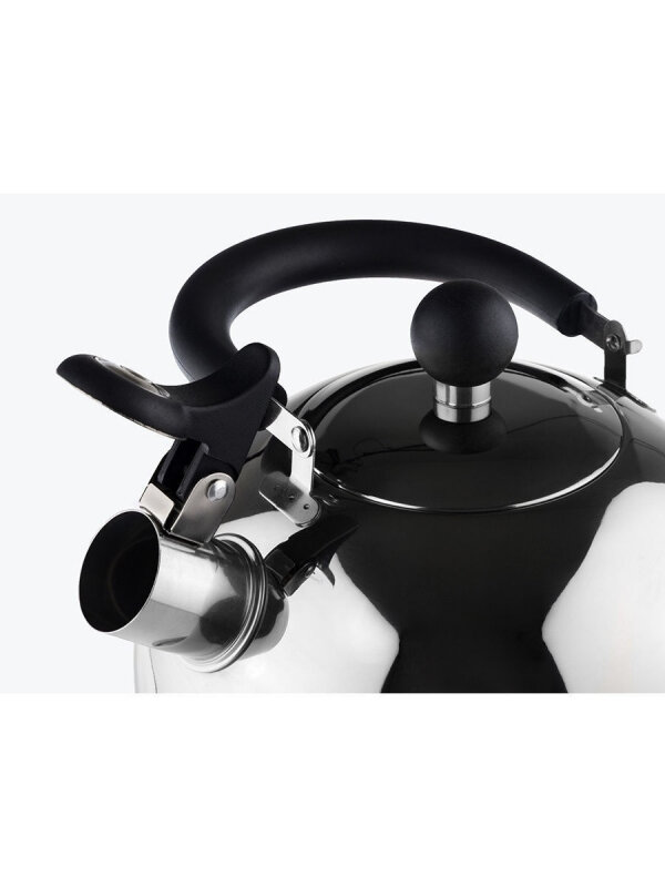 Чайник для плиты в серебристом корпусе с зеркальной тонировкой предназначен для кипячения и нагрева воды. Конструкция модели предусматривает корпус из нержавеющей стали и пластиковые элементы – ручку, круглый держатель на крышке, а также крышку в носике.