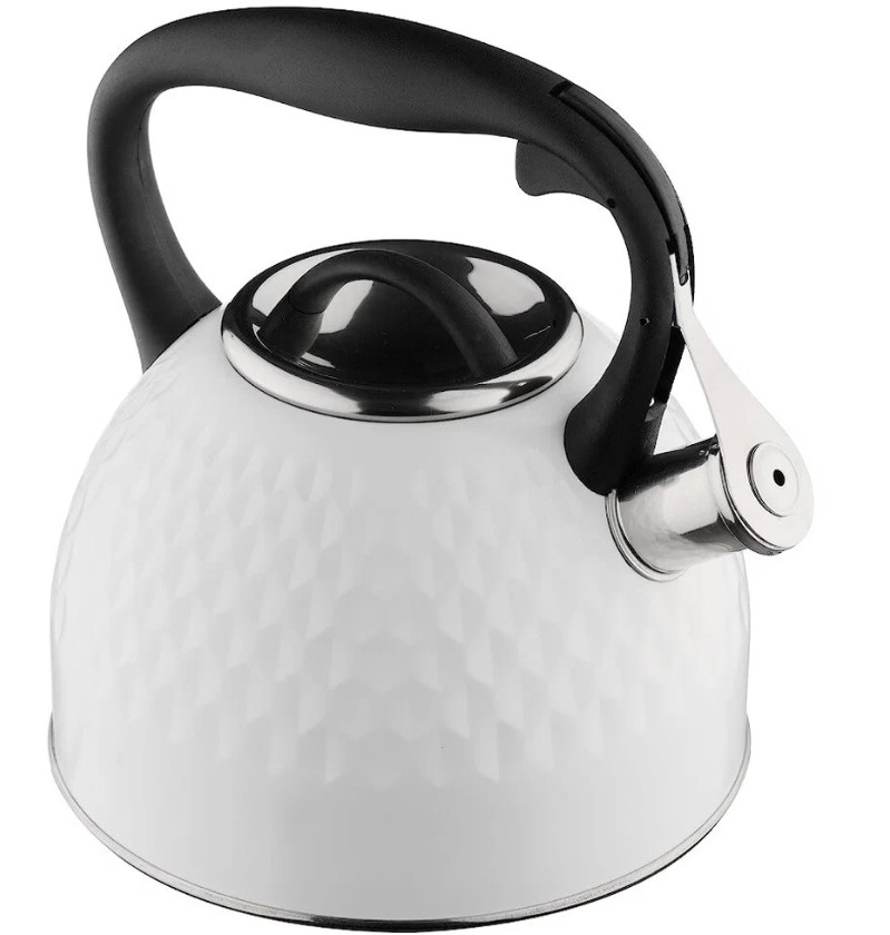 Ручка выполнена из бакелита, поэтому не нагревается в процессе нагрева. Свисток открывается и закрывается одним нажатием на кнопку.